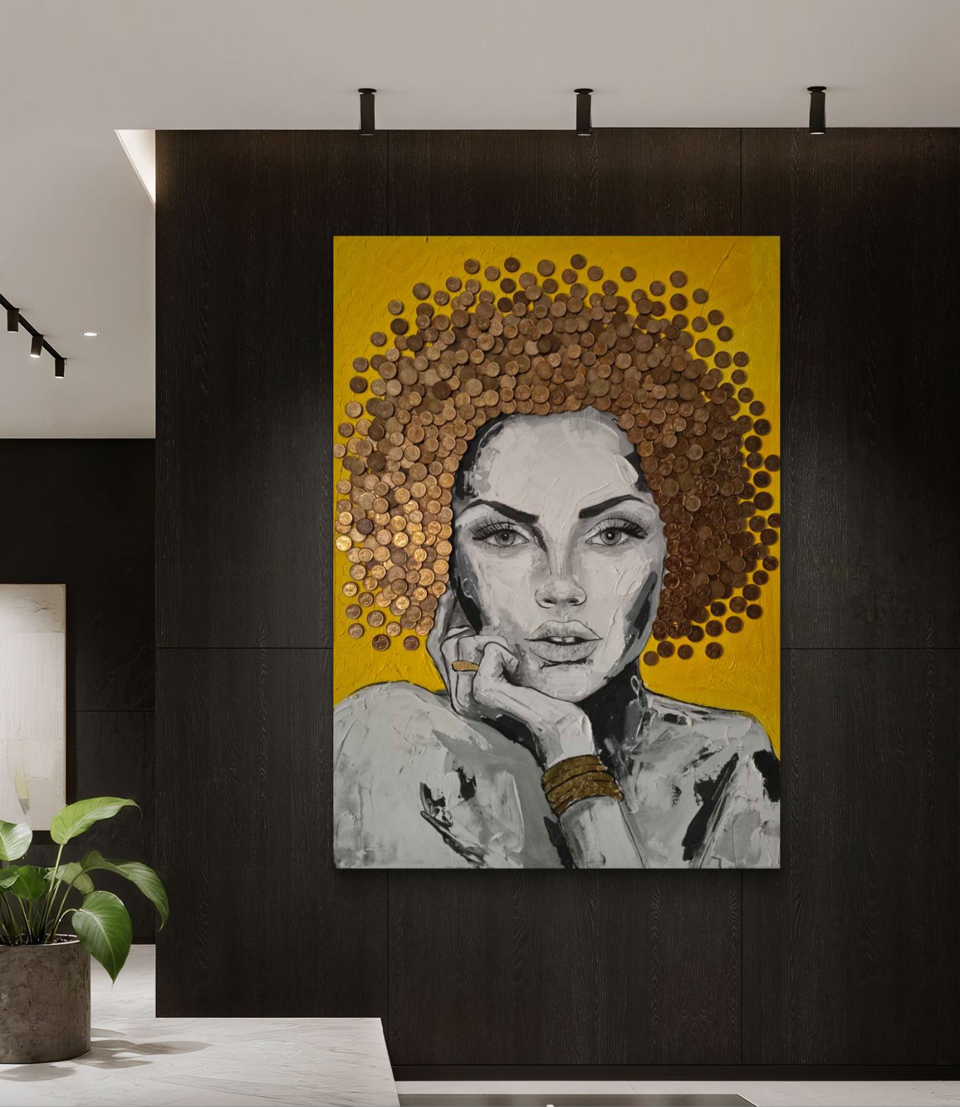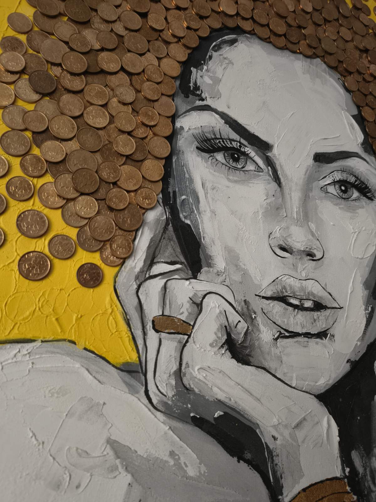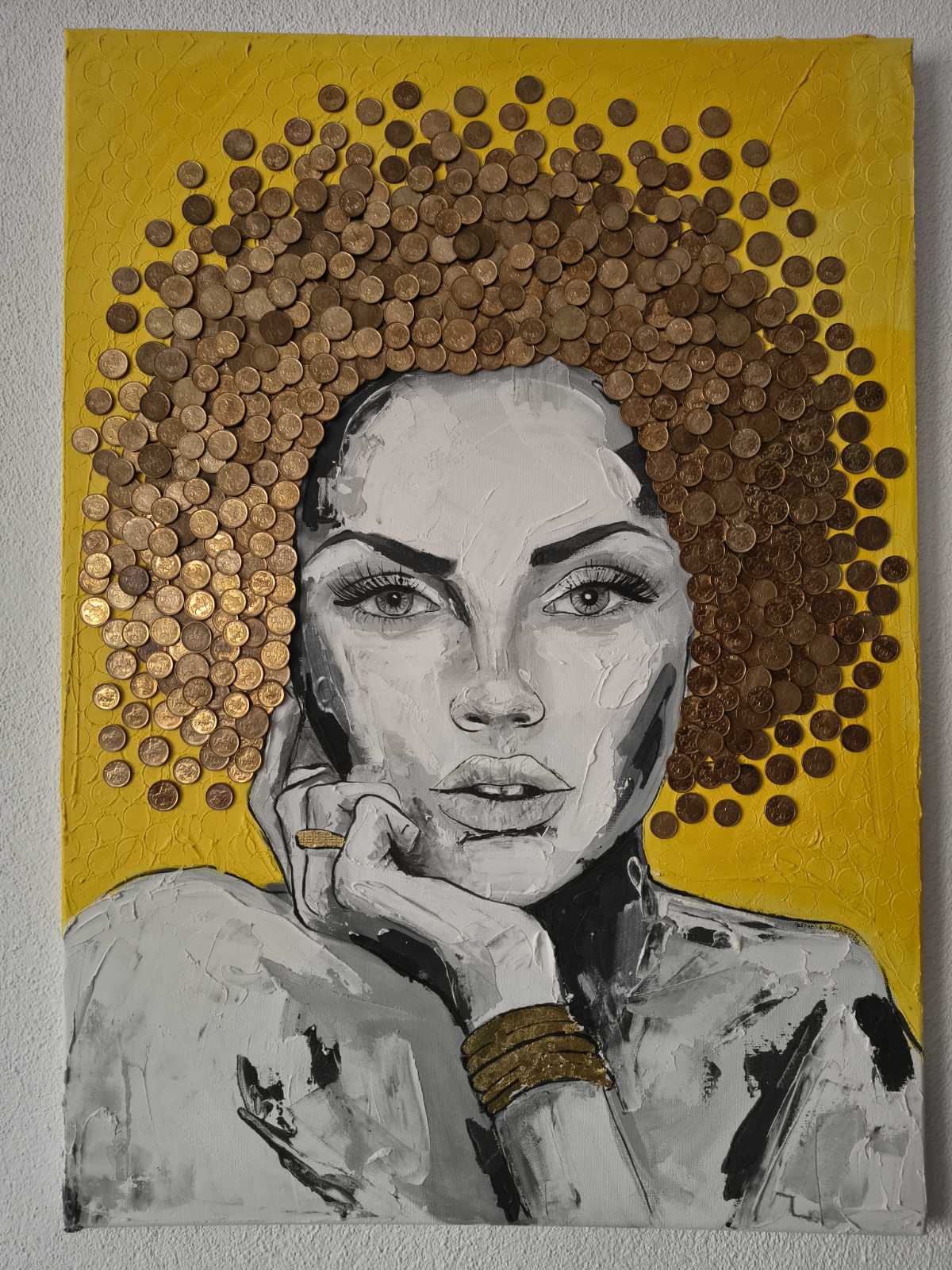 Handpainted painting on canvas with acryl and real bulgarian coins.